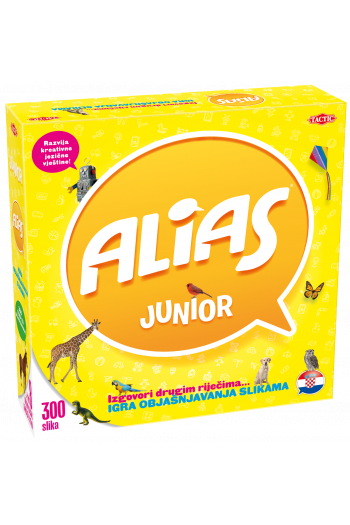 Alias Junior je vesela i dinamična društvena igra u kojoj djeca uče, smiju se i surađuju! Namijenjena je najmlađima, a idealna je za igru u timu – objašnjavajte riječi i slike svojim suigračima bez da ih izgovorite, koristeći tragove, suprotnosti i sinonime. Cilj je pogoditi što više pojmova prije nego što istekne vrijeme i tako napredovati po ploči. Tim koji prvi stigne do cilja – pobjeđuje!